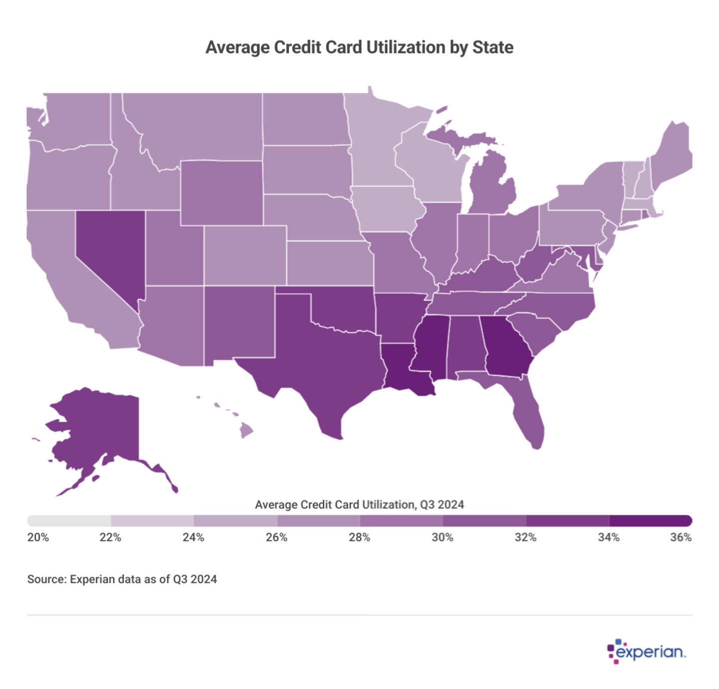 The average credit card utilization ratio among consumer credit cards remained at 29% in 2024, a relatively good indication that consumers, overall, aren't overextended (although we identify some outliers below).