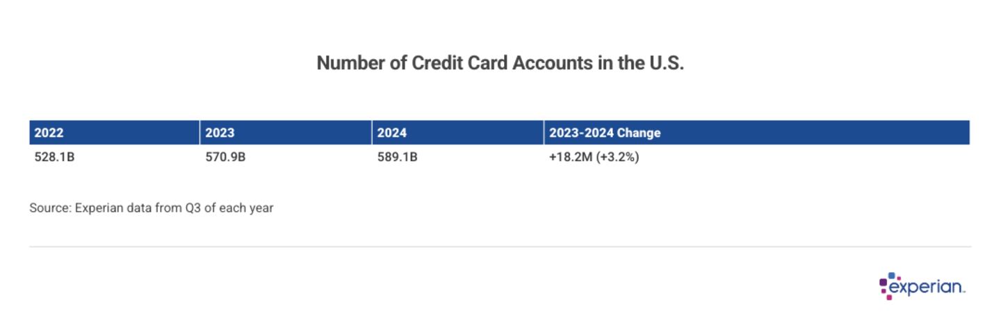 At the same time, more Americans are still carrying more plastic, metal and virtual cards than last year. U.S. consumers have roughly 18 million more credit card accounts than in 2023. However, that expansion in 2024, while significant, was less than half the number of new cards added to consumers' wallets in 2023.