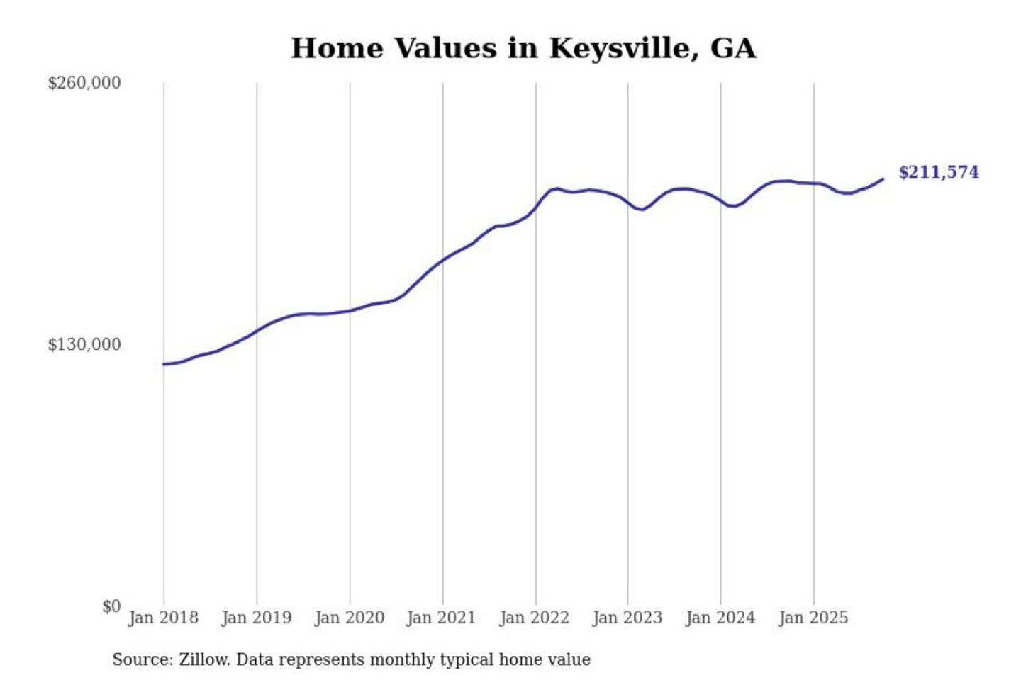 Stacker compiled a list of cities with the most expensive homes in the Augusta-Richmond County, GA-SC metro area using data from Zillow. Charts show the monthly typical home value since January 2018.