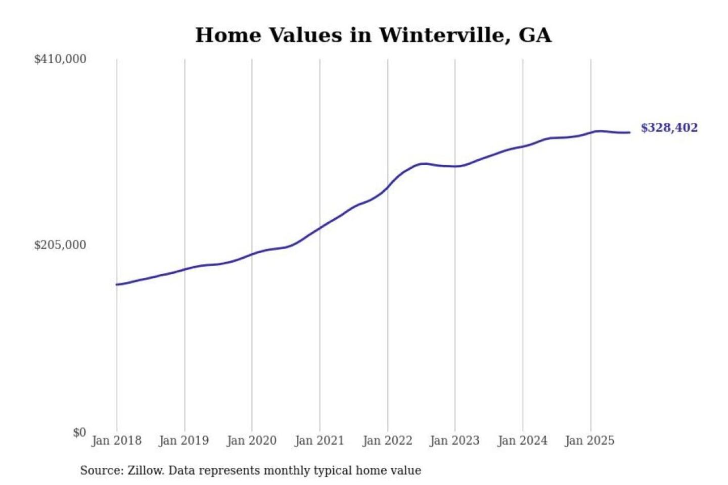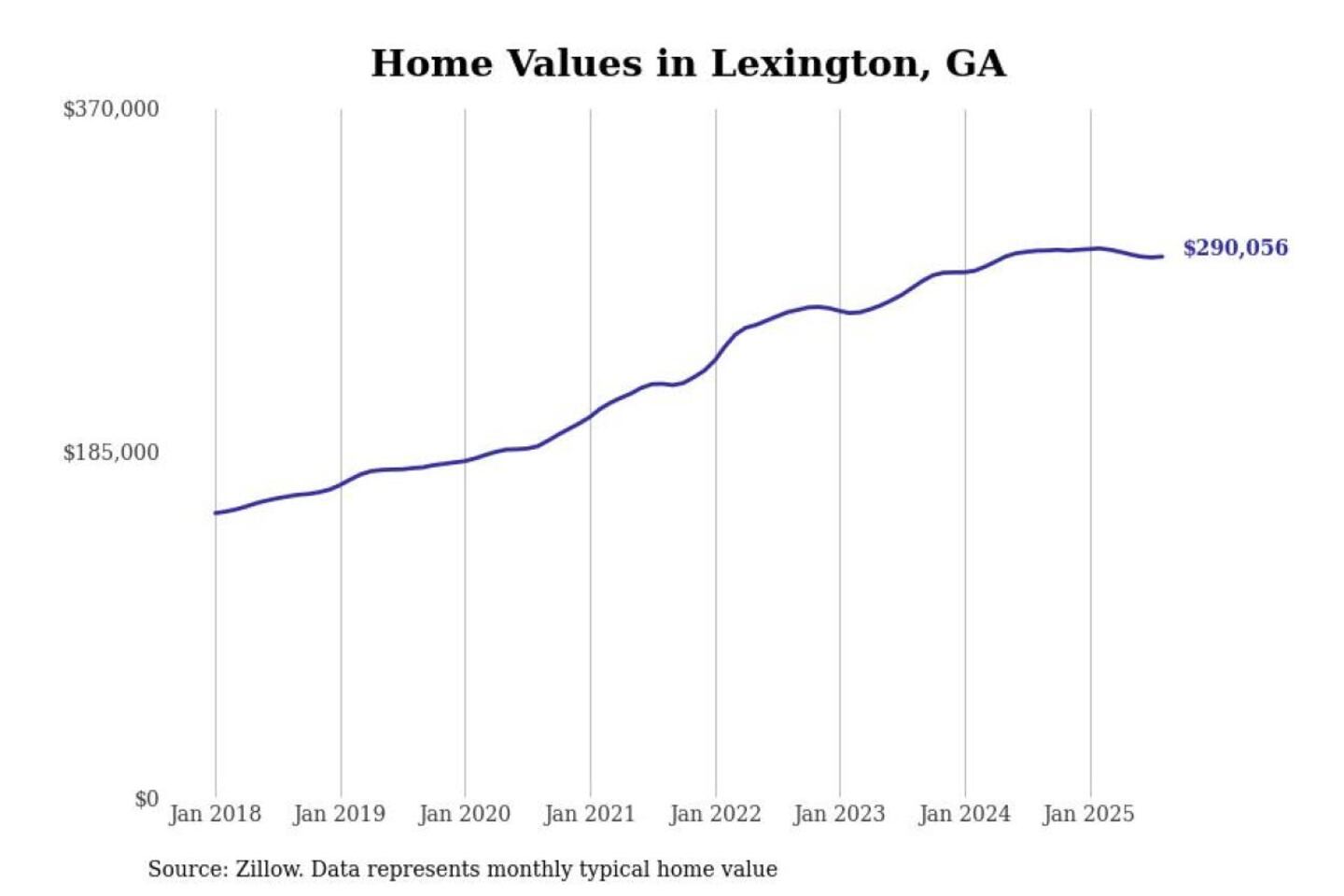 Stacker compiled a list of cities with the most expensive homes in the Athens metro area using data from Zillow. Charts show the monthly typical home value since January 2018. All 17 cities and towns with data available were included in the list.