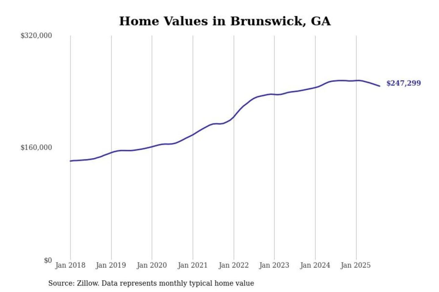 Stacker compiled a list of cities with the most expensive homes in the Brunswick metro area using data from Zillow. Charts show the monthly typical home value since January 2018. All 9 cities and towns with data available were included in the list.