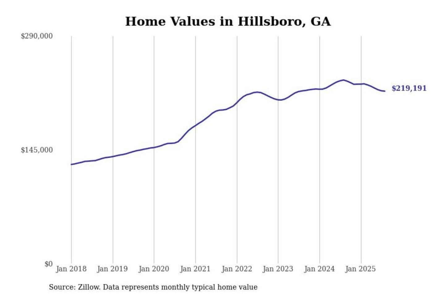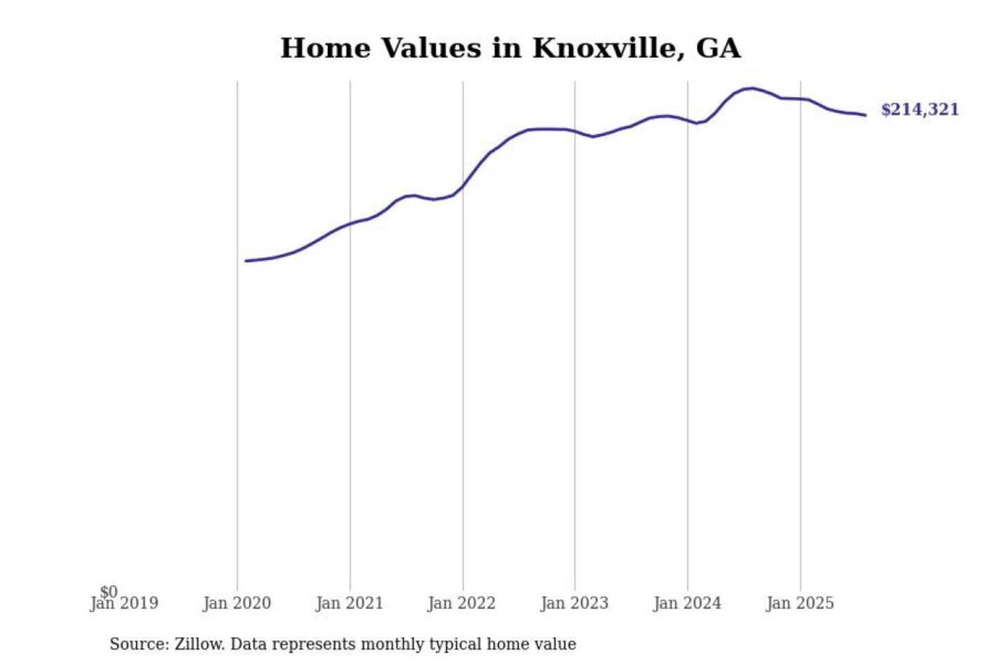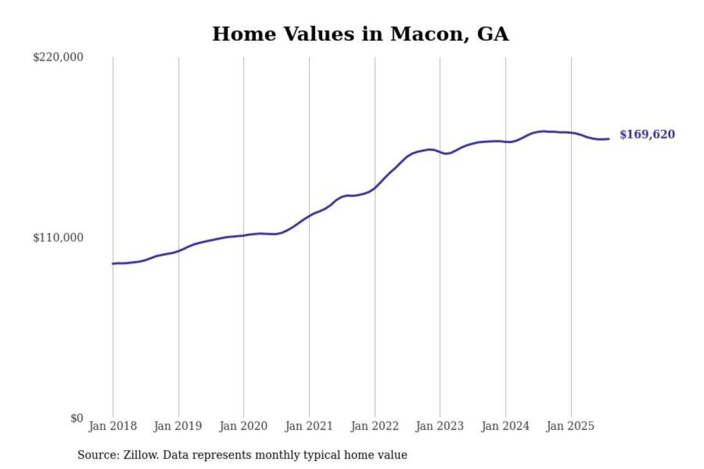 Stacker compiled a list of cities with the most expensive homes in the Macon metro area using data from Zillow. Charts show the monthly typical home value since January 2018. All 14 cities and towns with data available were included in the list.