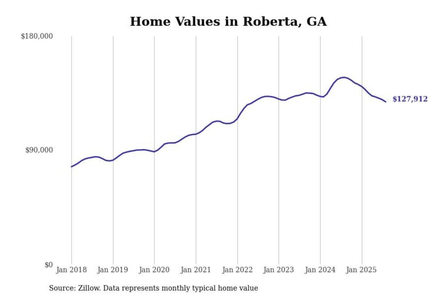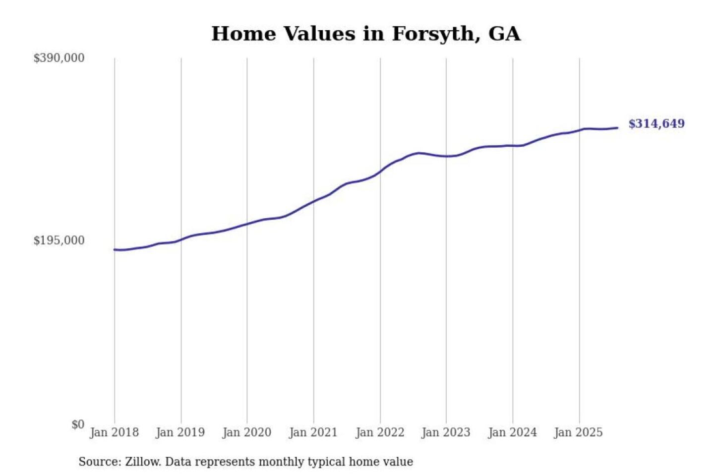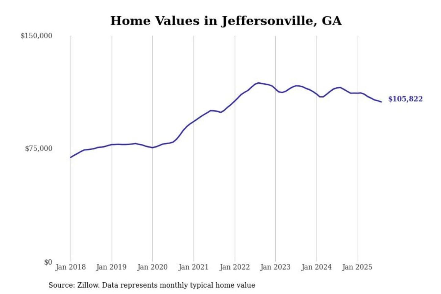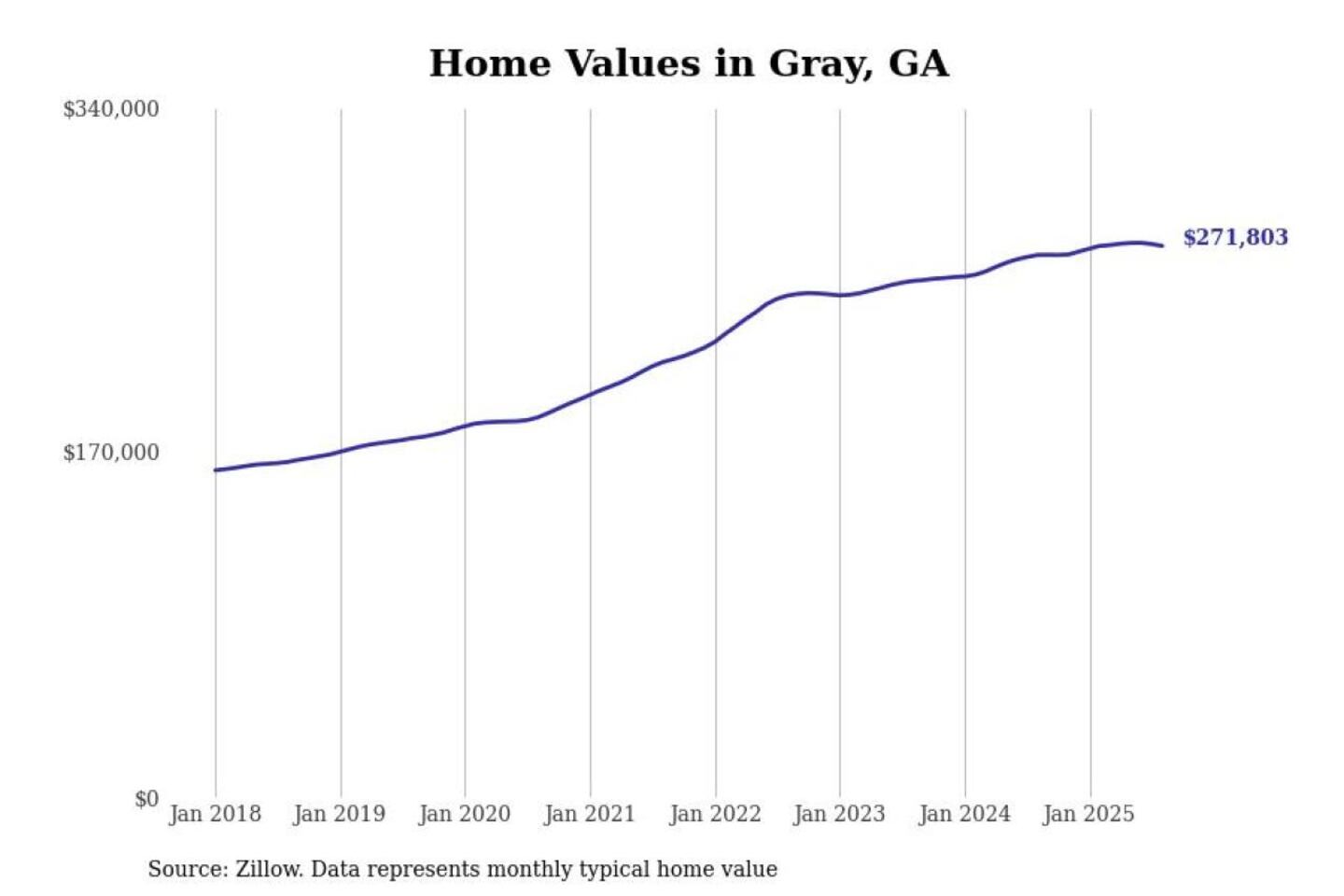 Stacker compiled a list of cities with the most expensive homes in the Macon metro area using data from Zillow. Charts show the monthly typical home value since January 2018. All 14 cities and towns with data available were included in the list.
