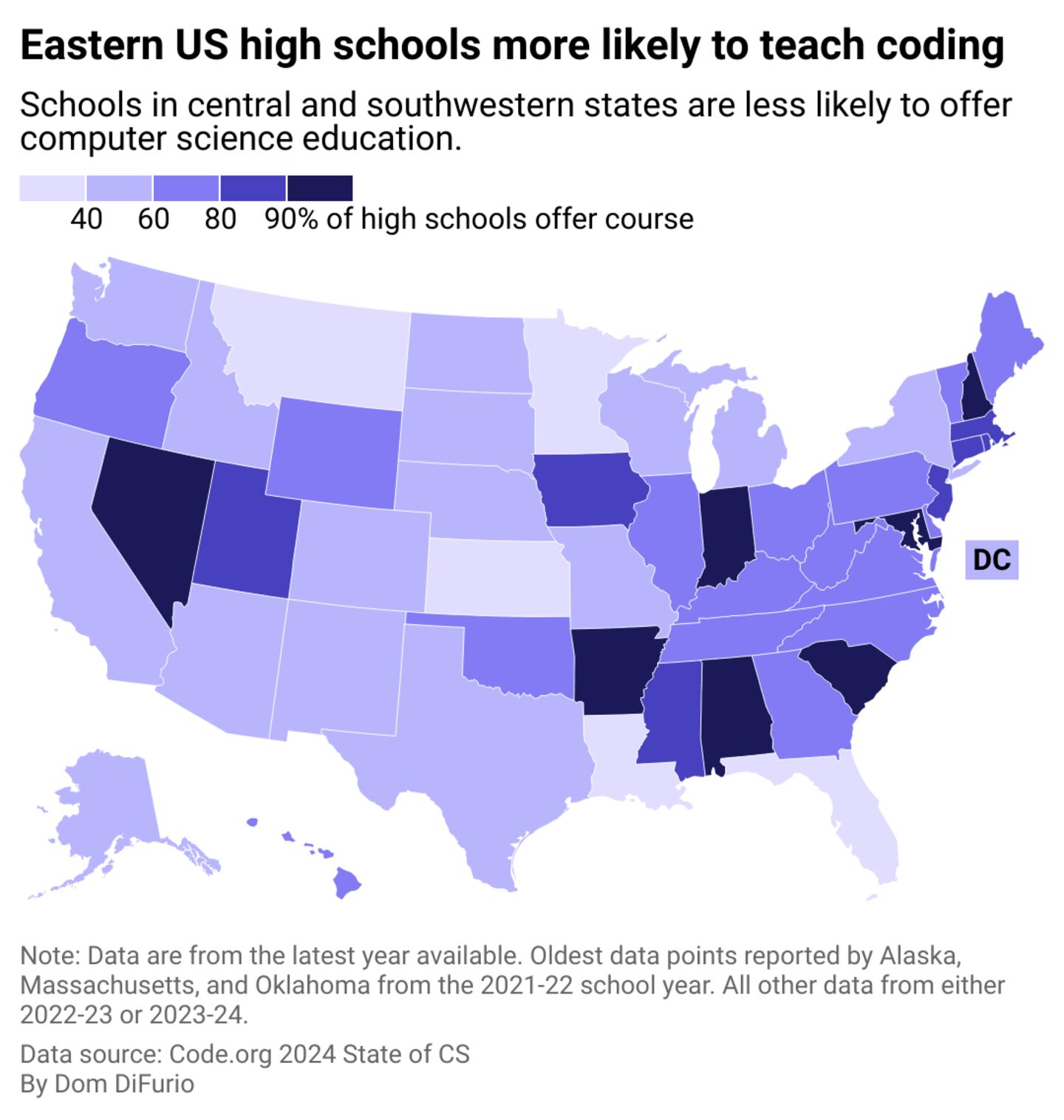 Computer science course availability varies significantly by state