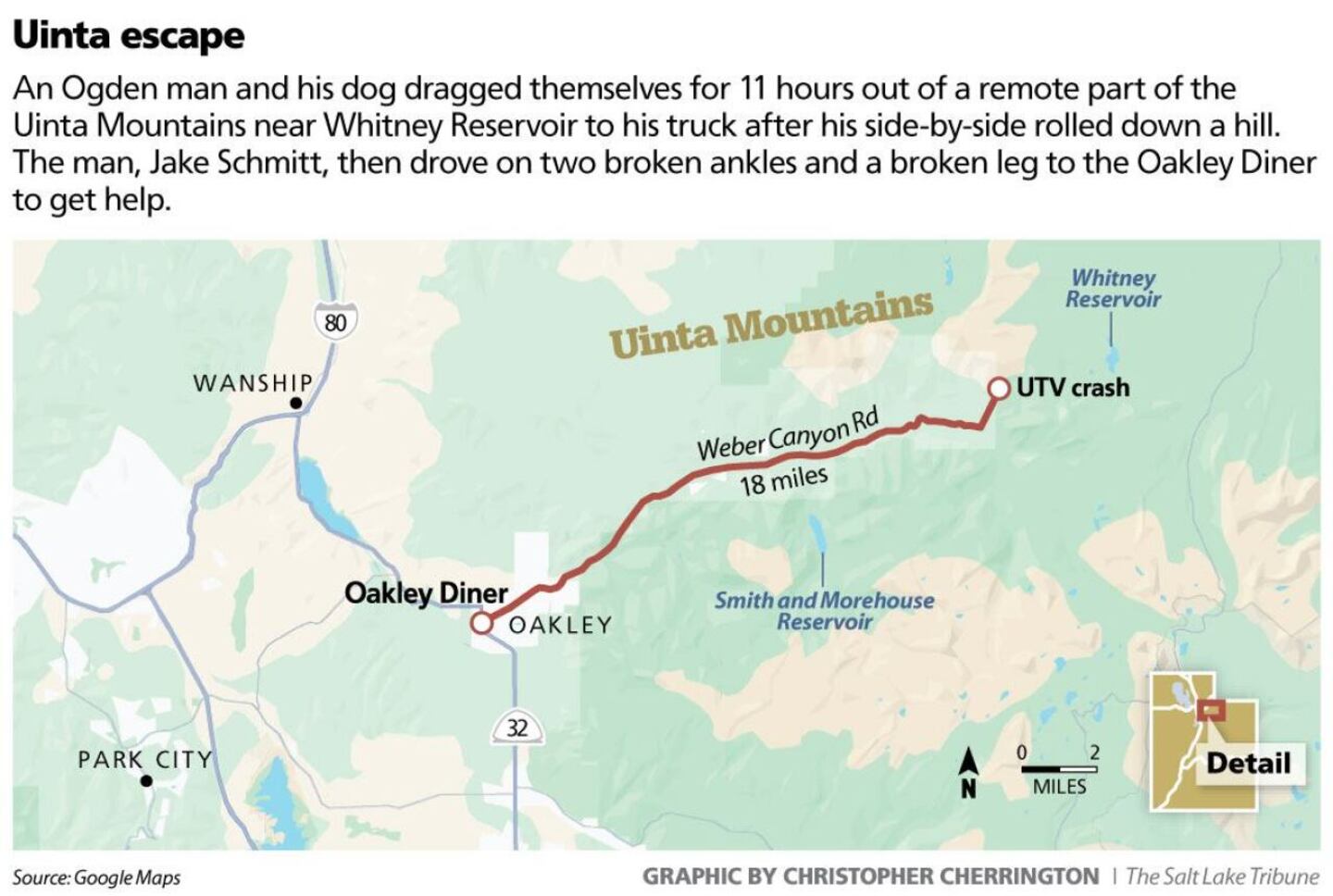 The Salt Lake Tribune reports a man's survival after a UTV crash, aided by his dog, Buddy, during an 11-hour crawl to safety. (Rick Egan for The Salt Lake Tribune/Rick Egan for The Salt Lake Tribune)