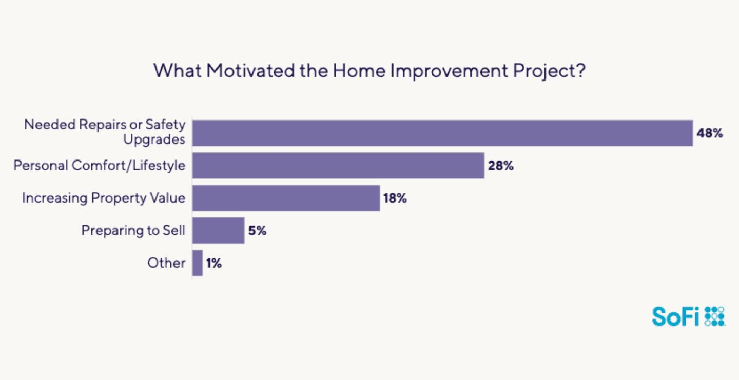 Almost half of the group (48%) said the changes were necessary repairs or safety upgrades. More than a quarter (28%) of the borrowers revamped their homes in order to reflect their personal comfort or lifestyle.