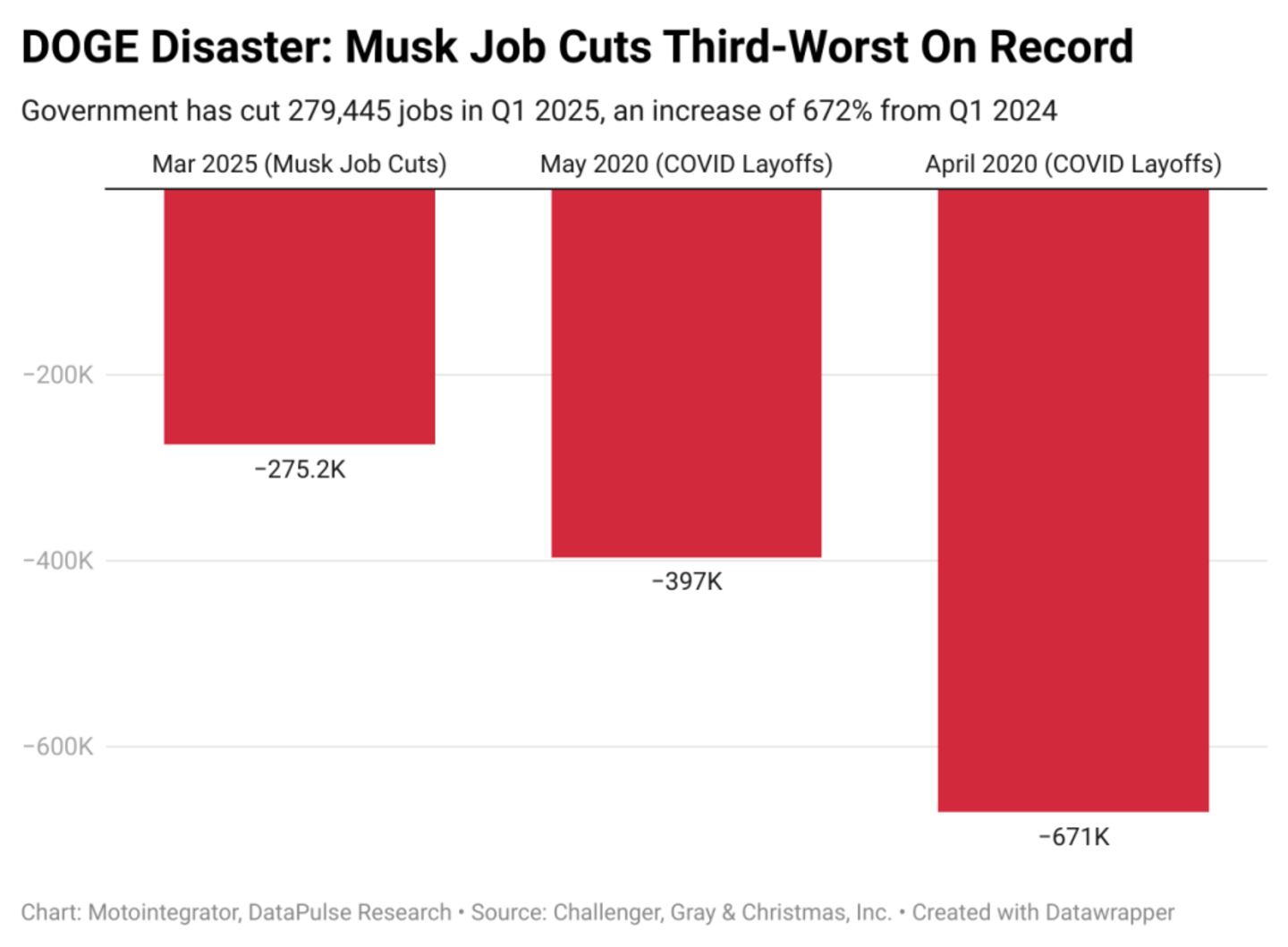 Musk’s economic agenda is being felt at the household level. According to the University of Michigan’s Consumer Sentiment Index, consumer sentiment has cratered to levels not seen since the peak of post-pandemic inflation, reflecting deep anxiety among households about personal finances, business conditions, unemployment, and inflation.