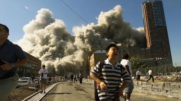 9/11 People run away as the North Tower of World Trade Center collapses after a hijacked airliner hit the building September 11, 2001 in New York City. (Photo by Jose Jimenez/Primera Hora/Getty Images) (Jose Jimenez/Primera Hora/Getty Images)