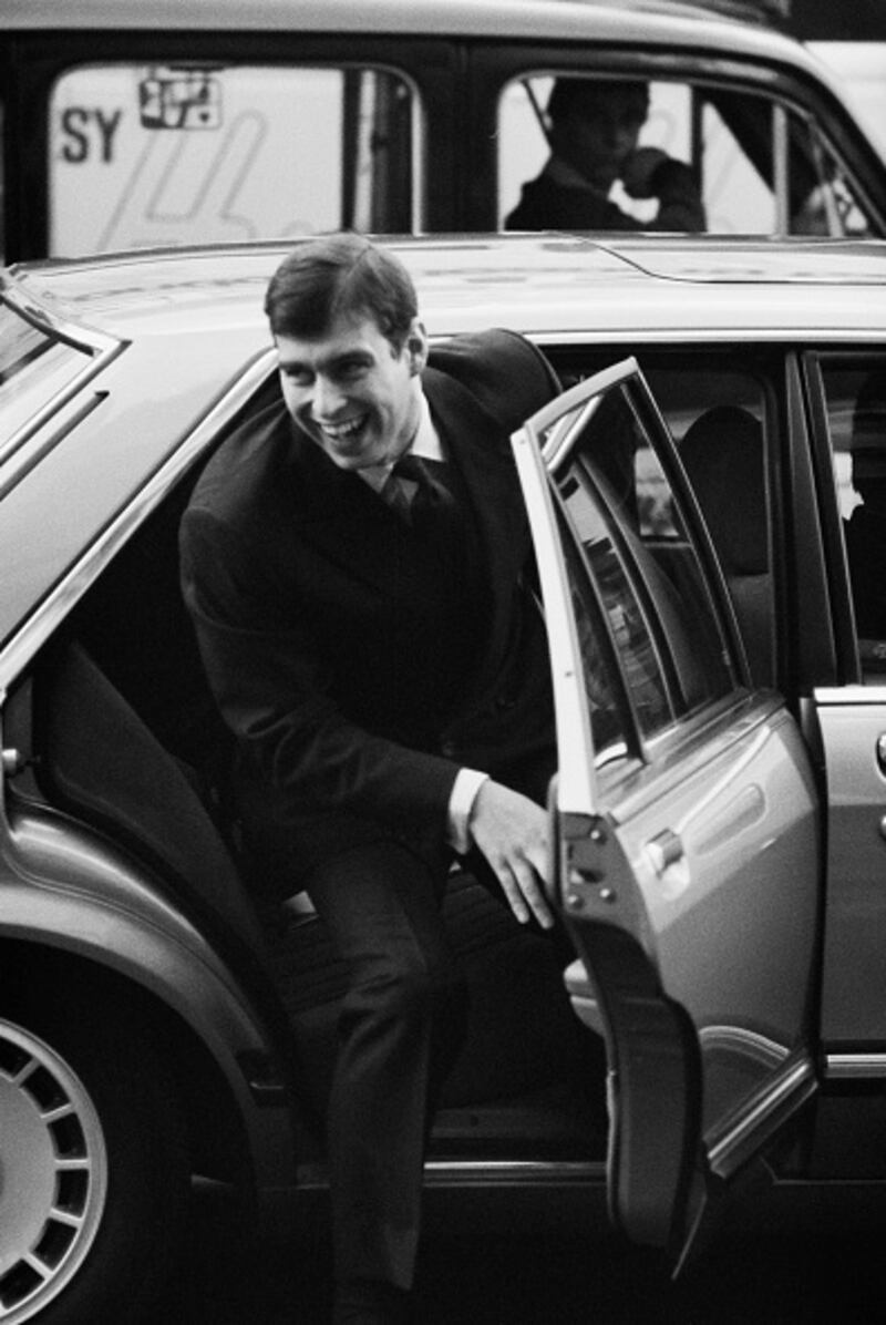 Through the years Prince Andrew, Duke of York, steps out of a vehicle, UK, 11th December 1984. (Photo by Steve Wood/Daily Express/Hulton Archive/Getty Images) (Steve Wood/Getty Images)