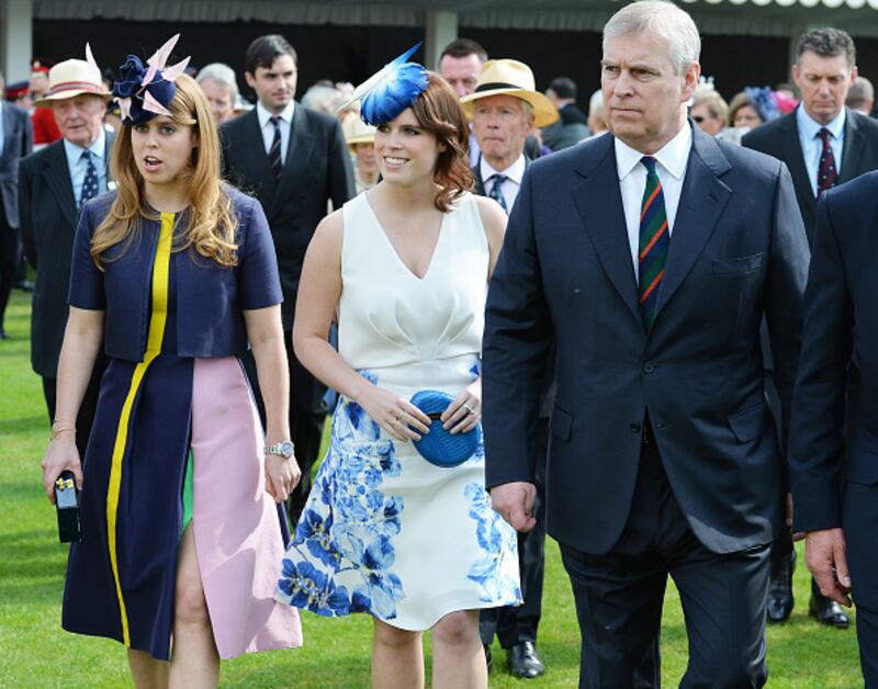 Through the years Prince Andrew, Duke of York hosts the annual Not Forgotten Association Garden Party, accompanied by Princess Beatrice and Princess Eugenie (C) at Buckingham Palace on May 26, 2016 in London, England. (Photo by John Stillwell - WPA Pool/Getty Images) (WPA Pool/Getty Images)