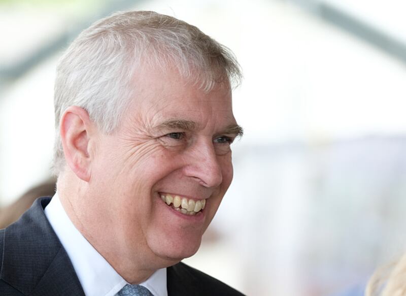 Through the years HRH Prince Andrew, Duke of York, reacts at the presentation of a hydrogen gas station after he arrived at the airport on April 5, 2005 in Munich, Germany. Prince Andrew arrived for a one day visit of Germany. (Photo by Jan Pitman/Getty Images) (Jan Pitman/Getty Images)
