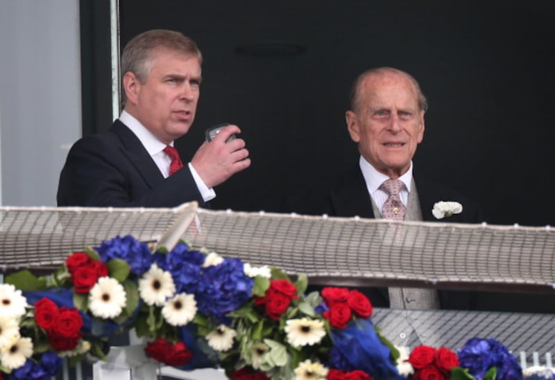 Through the years Prince Andrew, Duke of York (L) and Prince Philip, Duke of Edinburgh watch the crowds before the start of The Derby on June 2, 2012 in Epsom, England. For only the second time in its history, the UK celebrates the Diamond Jubilee of a monarch. Her Majesty Queen Elizabeth II celebrates the 60th anniversary of her ascension to the throne. Thousands of wellwishers from around the world have flocked to London to witness the spectacle of the weekend's celebrations. The Queen along with all the members of the royal family will participate in a River Pageant with a flotilla of 1,000 boats accompanying them down the Thames, a star studded free concert at Buckingham Palace, and a carriage procession and a Service of Thanksgiving at St Paul's Cathedral. (Photo by Peter Macdiarmid/Getty Images) (Peter Macdiarmid/Getty Images)
