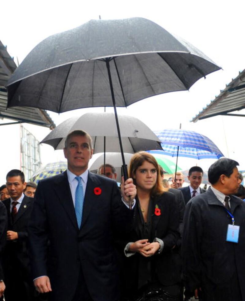 Through the years Britain's Prince Andrew, Duke of York and his daughter Princess Eugenie visit a refugee village for survivors of the "Sichuan's May 12 earthquake" on November 4, 2008 in Dujiangyan, one of the worst earthquake-hit area of Sichuan Province, China. (Photo by China Photos/Getty Images) (China Photos/Getty Images)