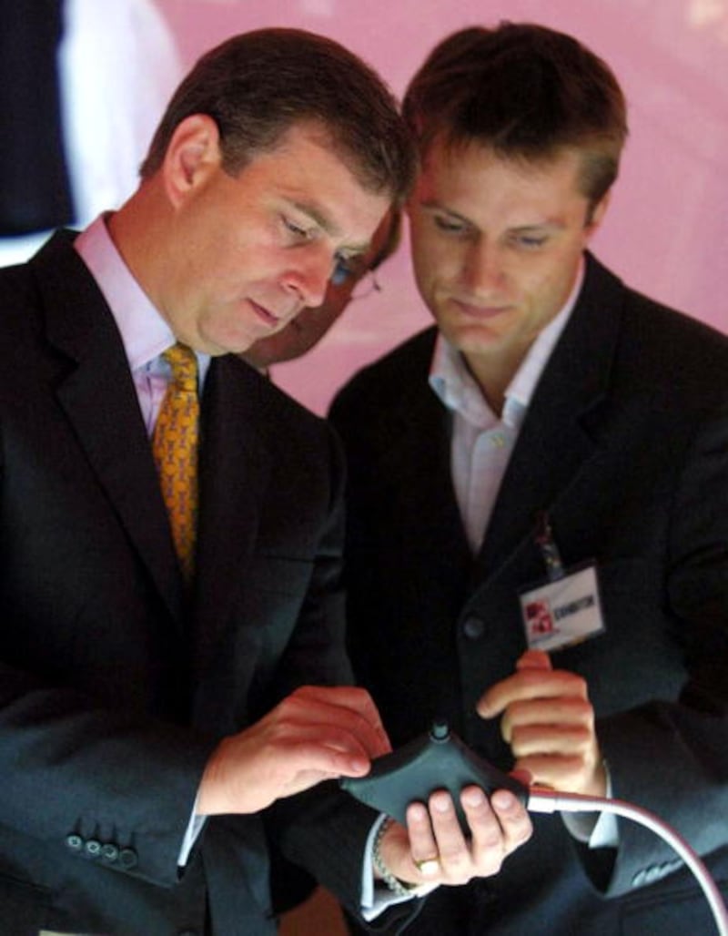 Through the years Britain's Prince Andrew (L) tries out a Pogo personal digital assistant (PDA) with the help of Tim Critchley at the "Great Expectations" design exhibit opening October 16, 2001 at Grand Central Station in New York City. The exhibit showcases British business design and innovation. (Photo by Mario Tama/Getty Images) (Mario Tama/Getty Images)